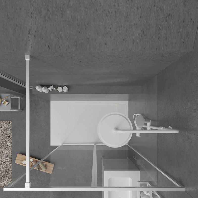Su preciosa perfilería minimalista de tan solo 2 cm (perfil a pared y brazo de sujeción extensible) ofrece un detalle único y elegante a una mampara de una única hoja de cristal incoloro de 4 mm . con tratamiento anti-cal incluido.