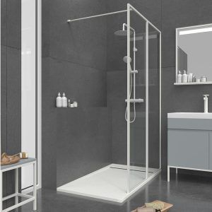 Aunque obviamente este tipo de mamparas de ducha son menos estancas que los frontales cerrados, no pienses que se saldrá el agua. Están diseñadas para cubrir la zona cercana a la barra de ducha con un ancho suficiente para que no se salga el agua.