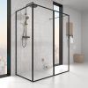 Su preciosa perfilería minimalista de tan solo 2 cm (perfil a pared y brazo de sujeción extensible) ofrece un detalle único y elegante a una mampara de una única hoja de cristal incoloro de 4 mm . con tratamiento anti-cal incluido.