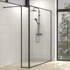 Su preciosa perfilería minimalista de tan solo 2 cm (perfil a pared y brazo de sujeción extensible) ofrece un detalle único y elegante a una mampara de una única hoja de cristal incoloro de 4 mm . con tratamiento anti-cal incluido.
