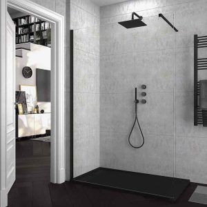 Sé el primero en valorar “Fijo de ducha mampara ZEN perfil acero inoxidable NEGRO MATE – Vidrio 10 MM Parsol GRIS con tratamiento anti-cal incluido”