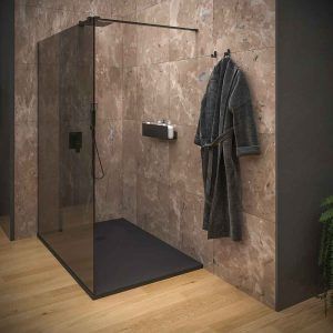Fijo de ducha mampara ZEN perfil acero inoxidable NEGRO MATE – Vidrio 10 MM Parsol GRIS con tratamiento anti-cal incluido