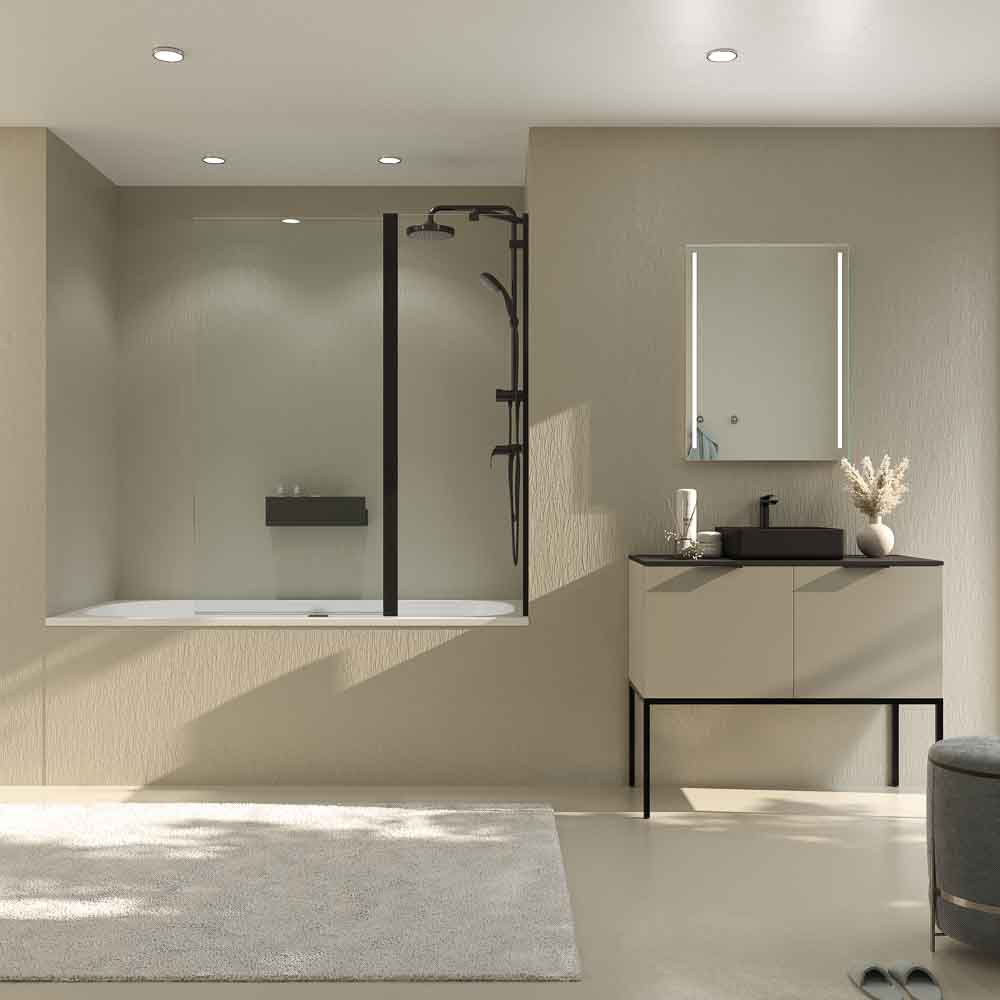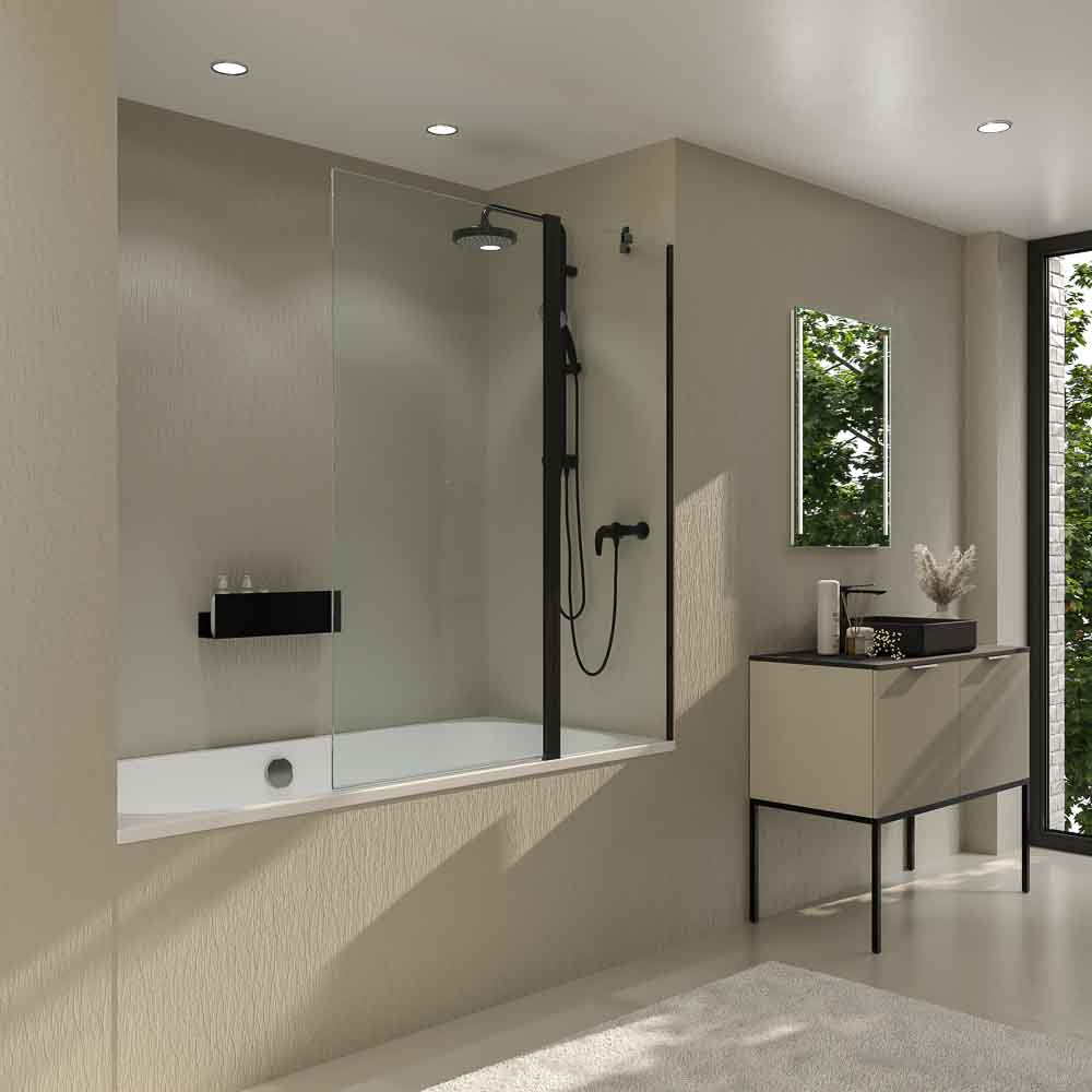 Mampara de bañera OPEN 1 fijo – 1 hoja abatible 125 cm NEGRO MATE