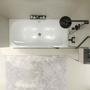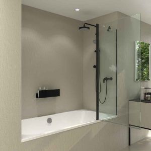 Sé el primero en valorar “Mampara de bañera OPEN 1 fijo – 1 hoja abatible 125 cm NEGRO MATE”