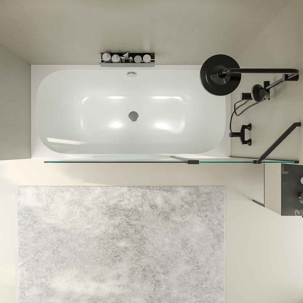 Los principales valores de la mampara de bañera OPEN  son: funcionalidad, elegancia, sensación de amplitud, ligereza visual y estanqueidad (aunque sea abierta, sus 1,25 cm de ancho evitan salpicaduras).