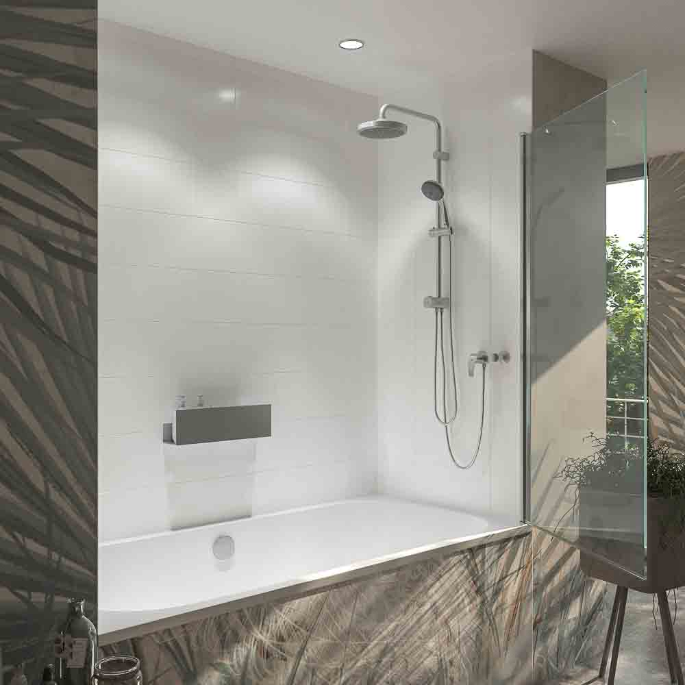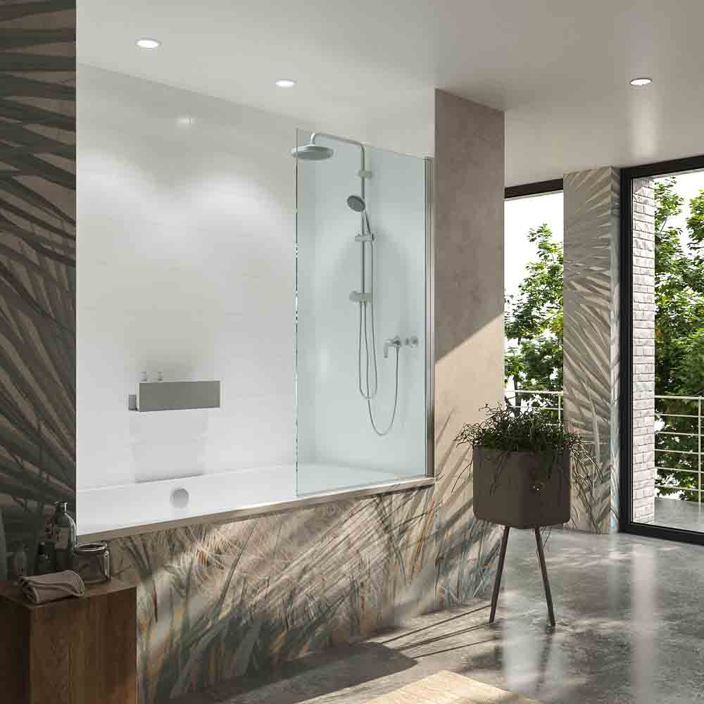 ¿Crees que tu zona de baño debería ser más confortable e higiénica? Con la mampara de bañera abatible Open, una hoja pivotante de 85 cm de ancho con perfil vertical en aluminio cromo brillo, lo conseguirás seguro.