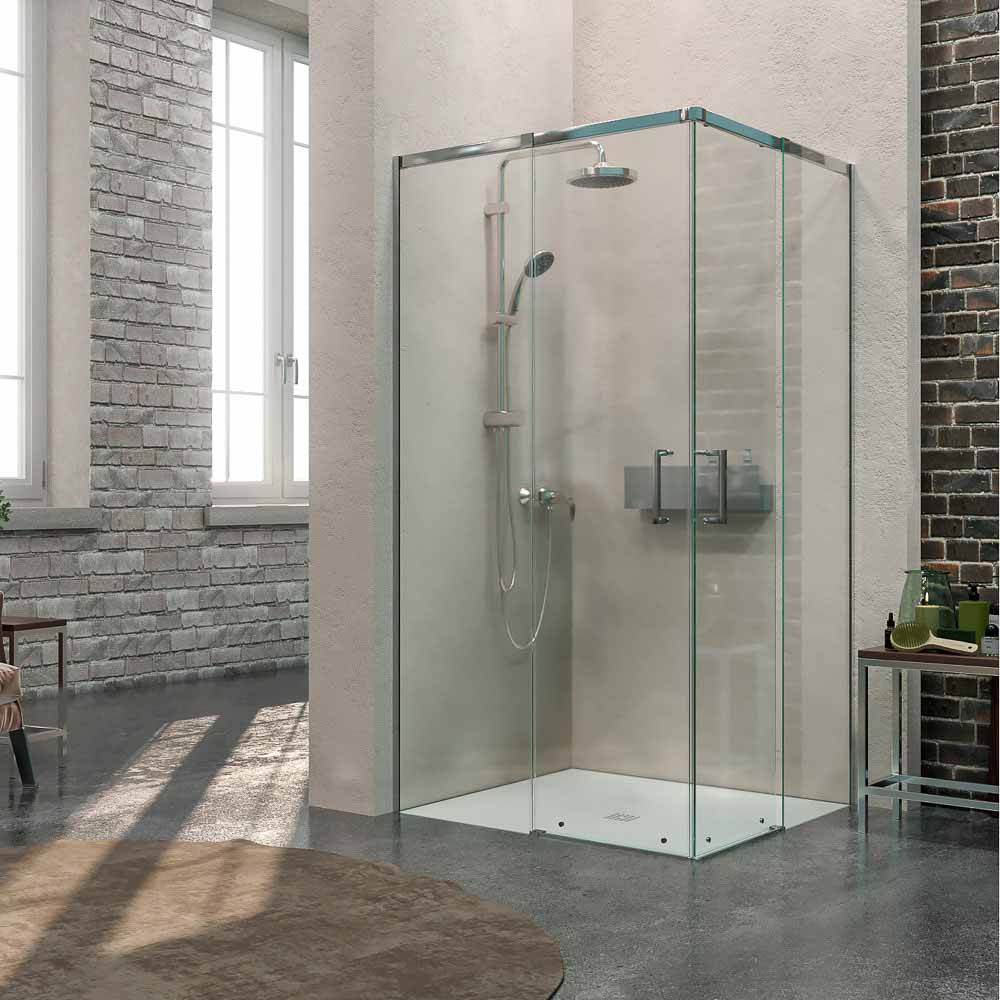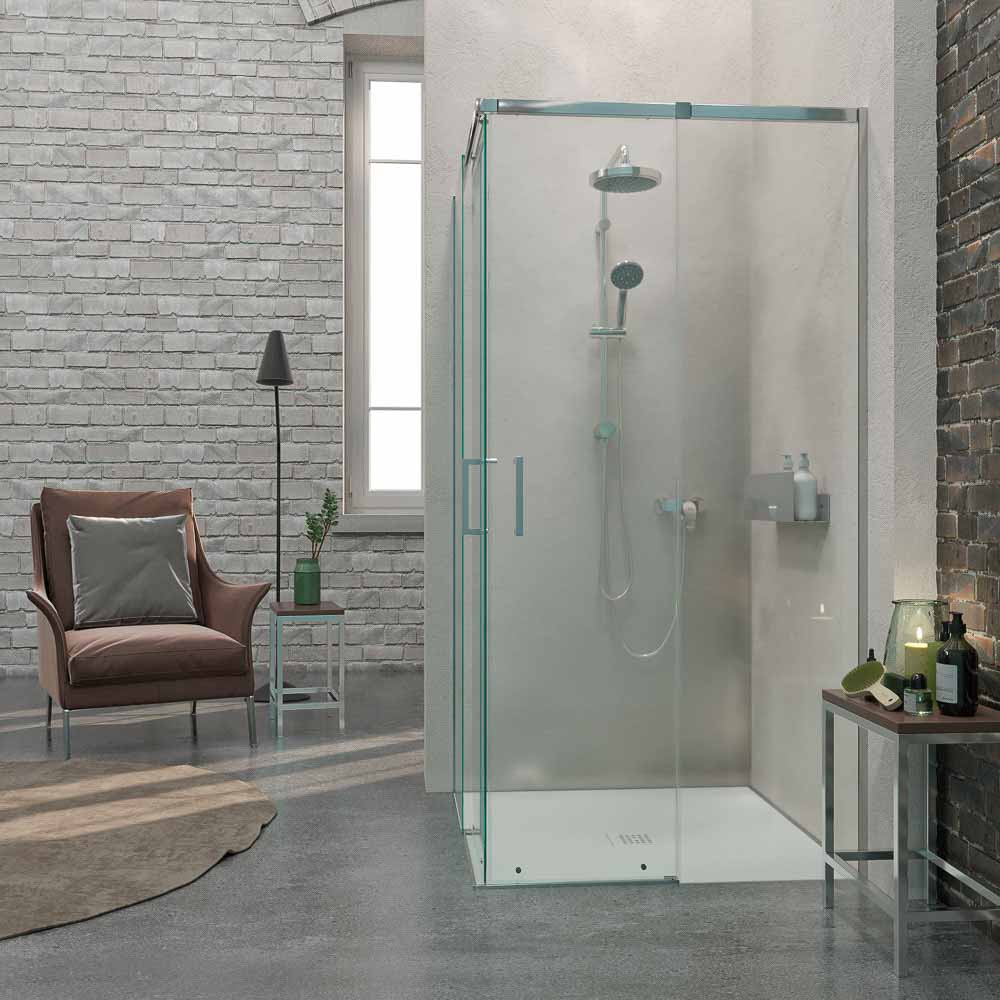 Su doble puerta corredera y sus partes fijas son idóneas para instalar cerca de obstáculos como el wc o el lavabo, puesto que no se precisa de centímetros extra para abrir la mampara de ducha.