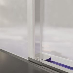 - Sus líneas rectas le dan un aspecto moderno muy actual, y su escasez de perfilería hace que intensifique la sensación de amplitud visual en el baño cuando este no es muy grande (en su versión de cristales transparentes sobre todo). La composición de una hoja fija y otra corredera es la más sencilla y por ende la estructura sufre menos y la mampara dura más.