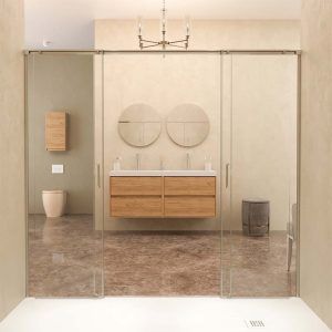 Al estar compuesta por dos hojas correderas y dos fijas, la mampara de ducha frontal AXER es un producto perfectamente viable para cuartos de baño abigarrados, donde la funcionalidad es esencial.