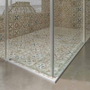 • Carece de perfil inferior, lo que aporta comodidad y seguridad en el acceso, además de resultar más higiénica, puesto que no se acumularán restos de cal en el raíl.