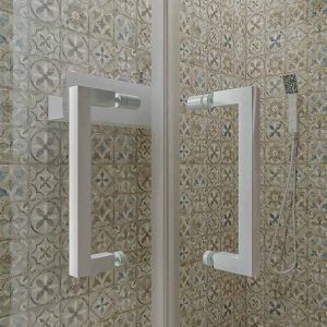 • La perfilería de la mampara de ducha angular AXER es de acero inoxidable acabada en blanco mate . Un material de alta resistencia al desgaste y la humedad.