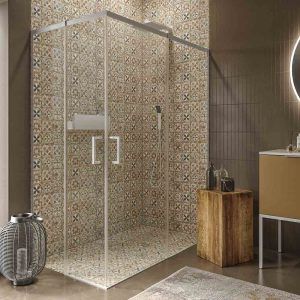 Su doble puerta corredera y sus partes fijas son idóneas para instalar cerca de obstáculos como el wc o el lavabo, puesto que no se precisa de centímetros extra para abrir la mampara de ducha.
