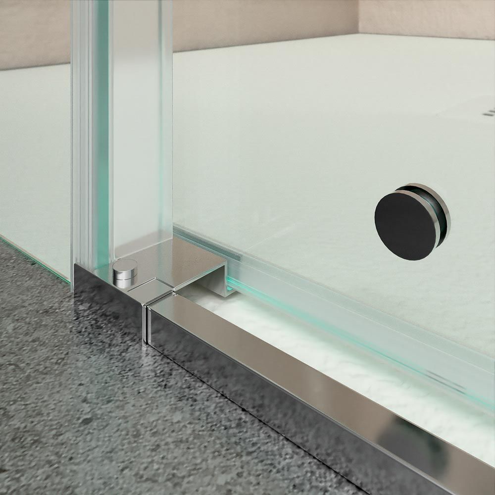 - Carece de perfil inferior, lo que aporta comodidad y seguridad en el acceso, además de resultar más higiénica, puesto que no se acumularán restos de cal en el raíl.