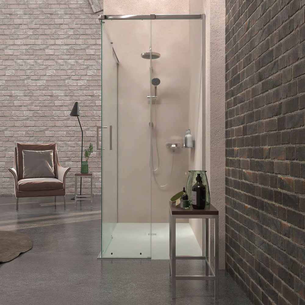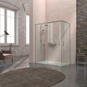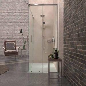Su doble puerta corredera y sus partes fijas son idóneas para instalar cerca de obstáculos como el wc o el lavabo, puesto que no se precisa de centímetros extra para abrir la mampara de ducha.