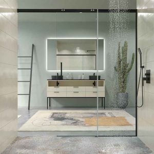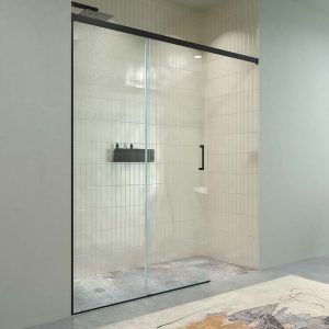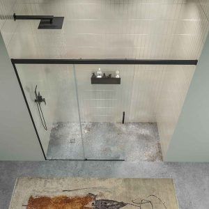 - Mampara de perfiles minimalistas en los laterales y sin perfiles ni railes inferiores