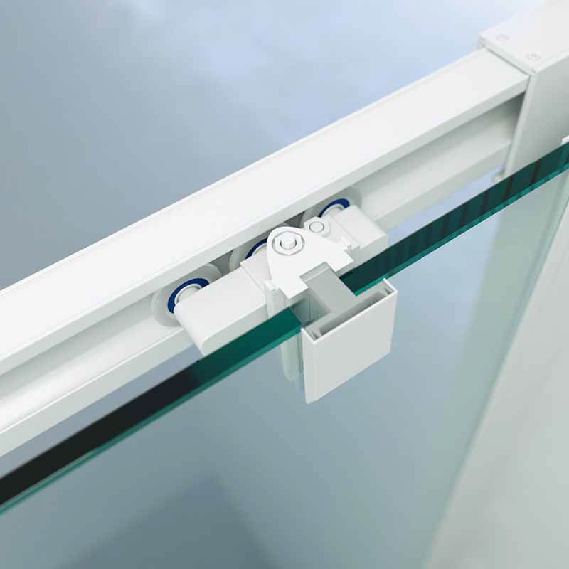 La mampara de ducha angular BASIC lleva cuatro hojas de vidrio templado de 6 mm de espesor (por el momento solo disponible en acabado incoloro únicamente), no incluye guía inferior y sí anti-cal de serie. Además, entre las novedades que incorpora este modelo están unos perfiles laterales más estrechos y de diseño depurado, así como un sistema de montaje muy sencillo para que cualquier cliente pueda colocar su nueva mampara en casa si lo desea.