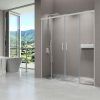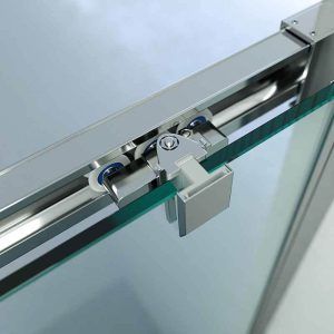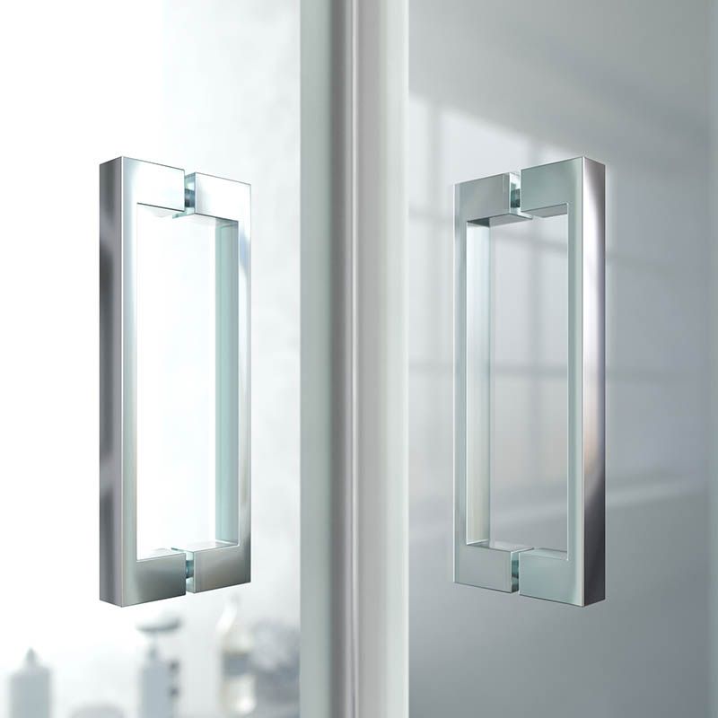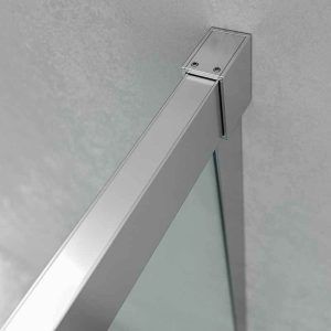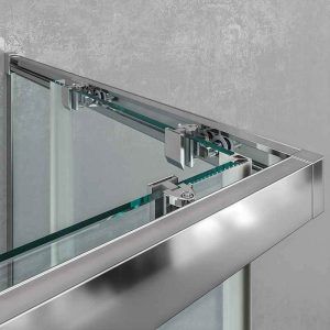 La mampara de ducha angular BASIC se compone de dos hojas fijas y dos correderas, con un acceso por el vértice y posibilidad de instalarla con apertura a izquierdas o derechas. Esta mampara de ducha estándar se entrega en 2-3 días y está disponible en un amplio rango de medidas: de 68-100 a 68-100 cm por lado.