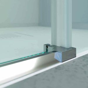 La mampara de ducha angular BASIC lleva cuatro hojas de vidrio templado de 6 mm de espesor (por el momento solo disponible en acabado incoloro únicamente), no incluye guía inferior y sí anti-cal de serie. Además, entre las novedades que incorpora este modelo están unos perfiles laterales más estrechos y de diseño depurado, así como un sistema de montaje muy sencillo para que cualquier cliente pueda colocar su nueva mampara en casa si lo desea.