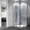 • La mampara de ducha angular FLARE tiene vidrio templado transparente de seguridad de 6 mm. Visualmente ligero pero siempre seguro.