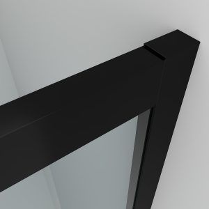 • La perfilería de esta mampara de baño es de aluminio anodizado negro mate, lo que, junto a las líneas depuradas y a su tirador a juego, confiere una sensación de amplitud y luz ante la que es imposible resistirse.