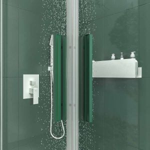 Sé el primero en valorar “Mampara de ducha cuadrada NEXO apertura angular 2 fijos-2 puertas correderas Acabado VERDE OLIVA”