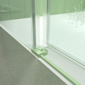 Quieres seguir la tendencia de las mamparas de ducha de estilo industrial? La mampara de ducha  con perfilería de color verde ópalo es una mampara industrial soberbia. Un conjunto de dos hojas fijas con 2 hojas correderas  muy elegante, seguro, fácil de mantener y duradero. ¡No hace falta pedir más!