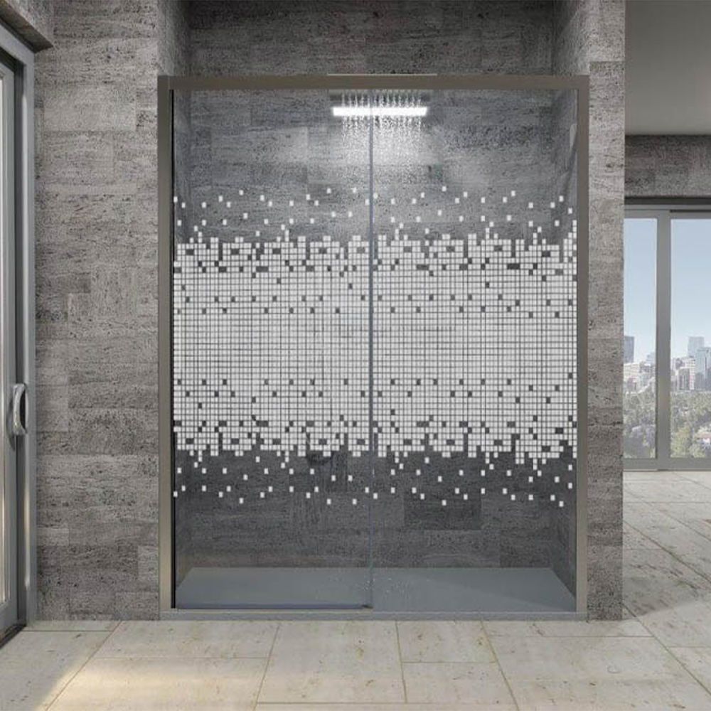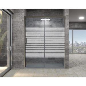 - El vidrio templado de 6 mm serigrafiado regala un cristal sin particiones e ingrávido, otorgando un punto más distinguido y minimalista a esta bonita mampara de ducha.