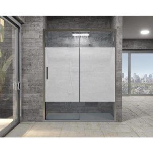 - Su composición de mampara de ducha de 1 fija y 1 corredera con serigrafia a elegir , permite economizar el espacio cuando es reducido o está algo abigarrado.