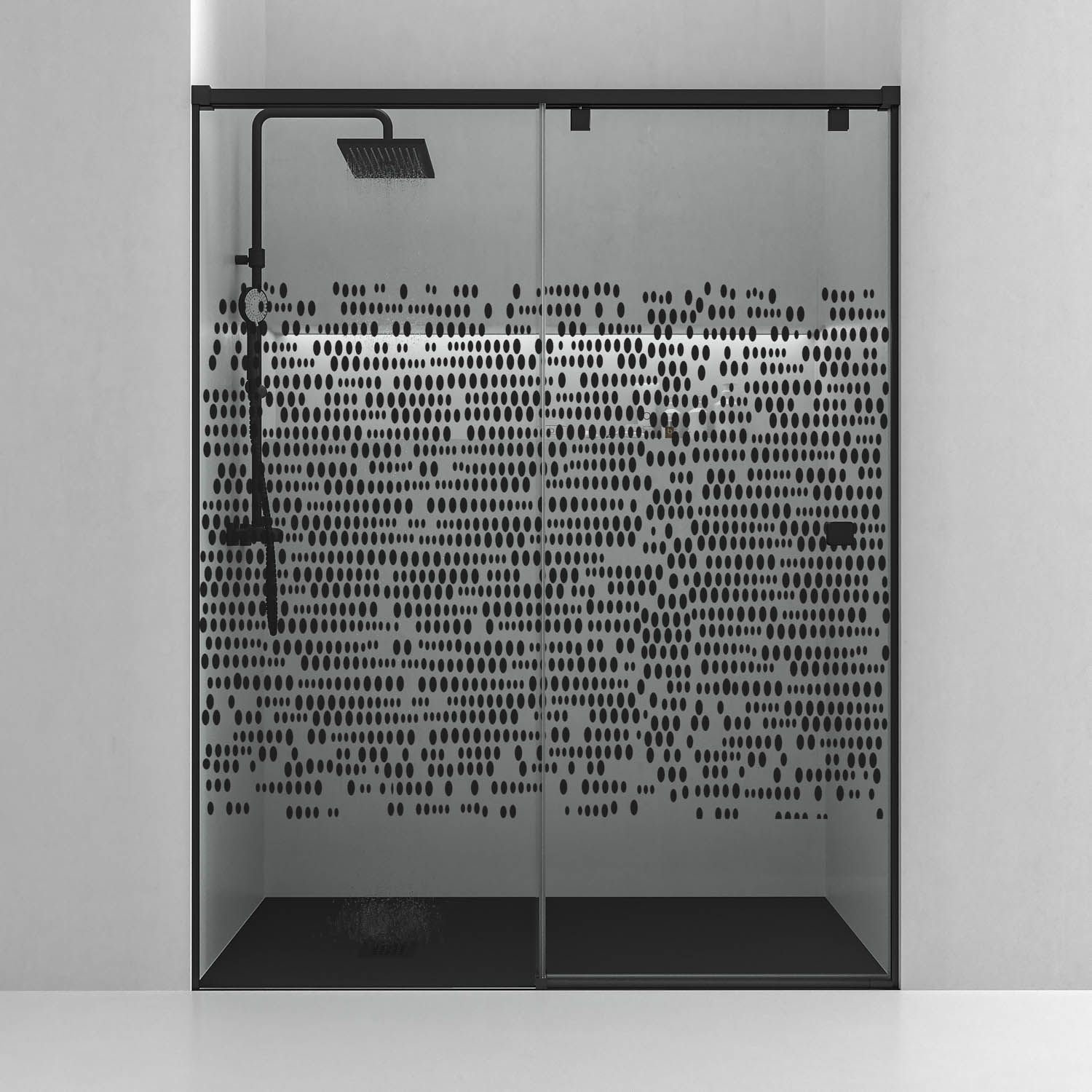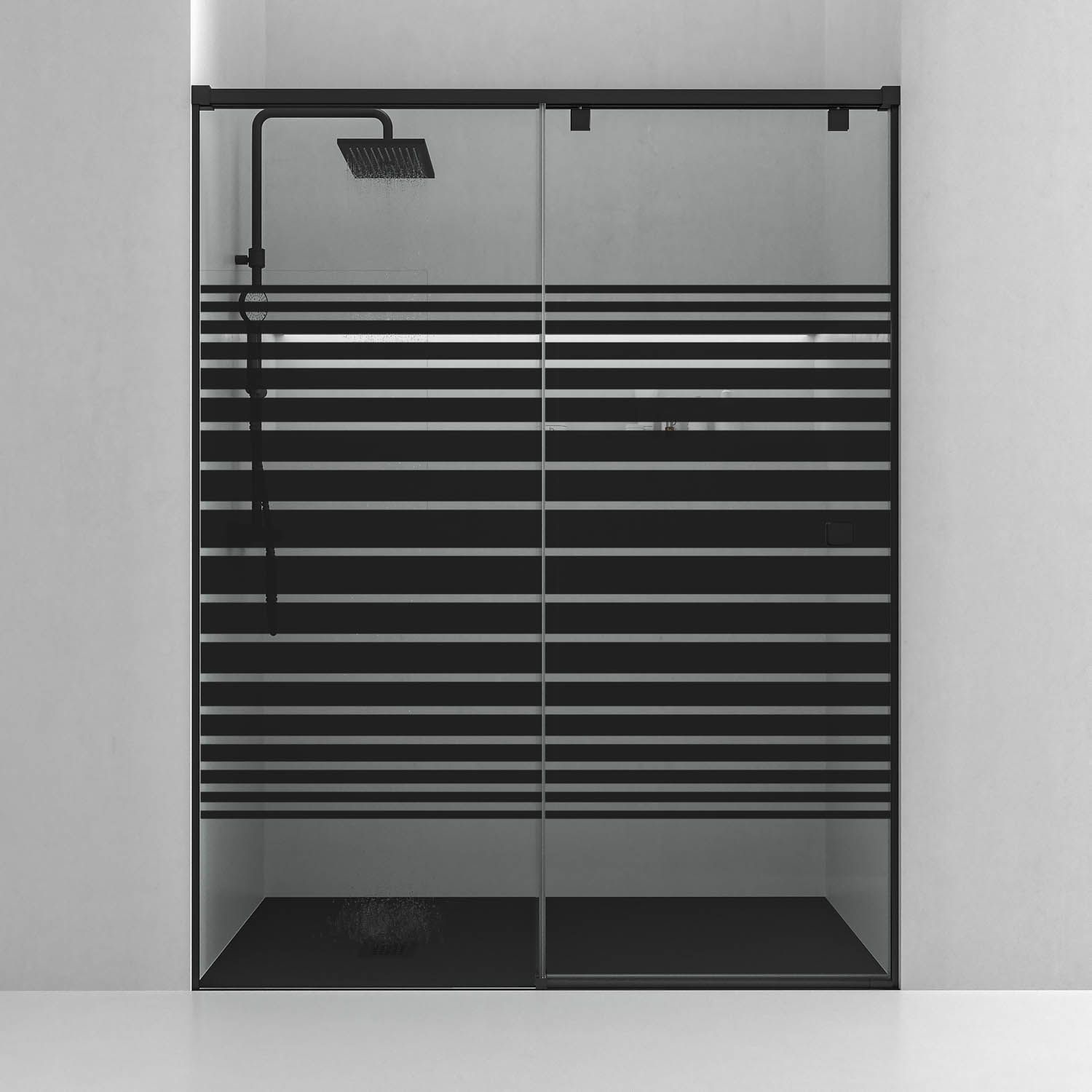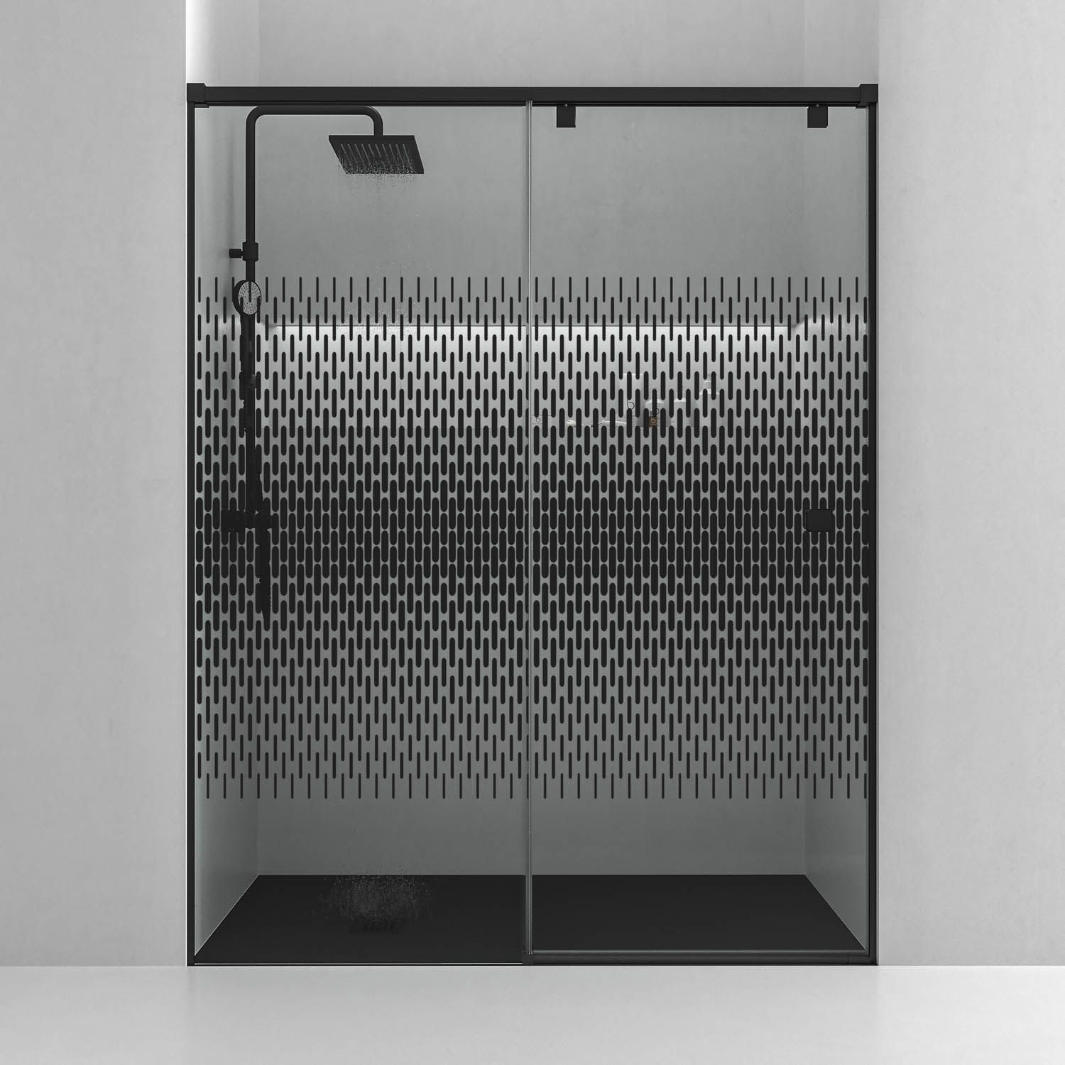 Mampara de ducha frontal LIFE 1 fijo + 1 puerta corredera Serigrafiada vidrio 8 mm con cierre amortiguado. Acabado NEGRO MATE
