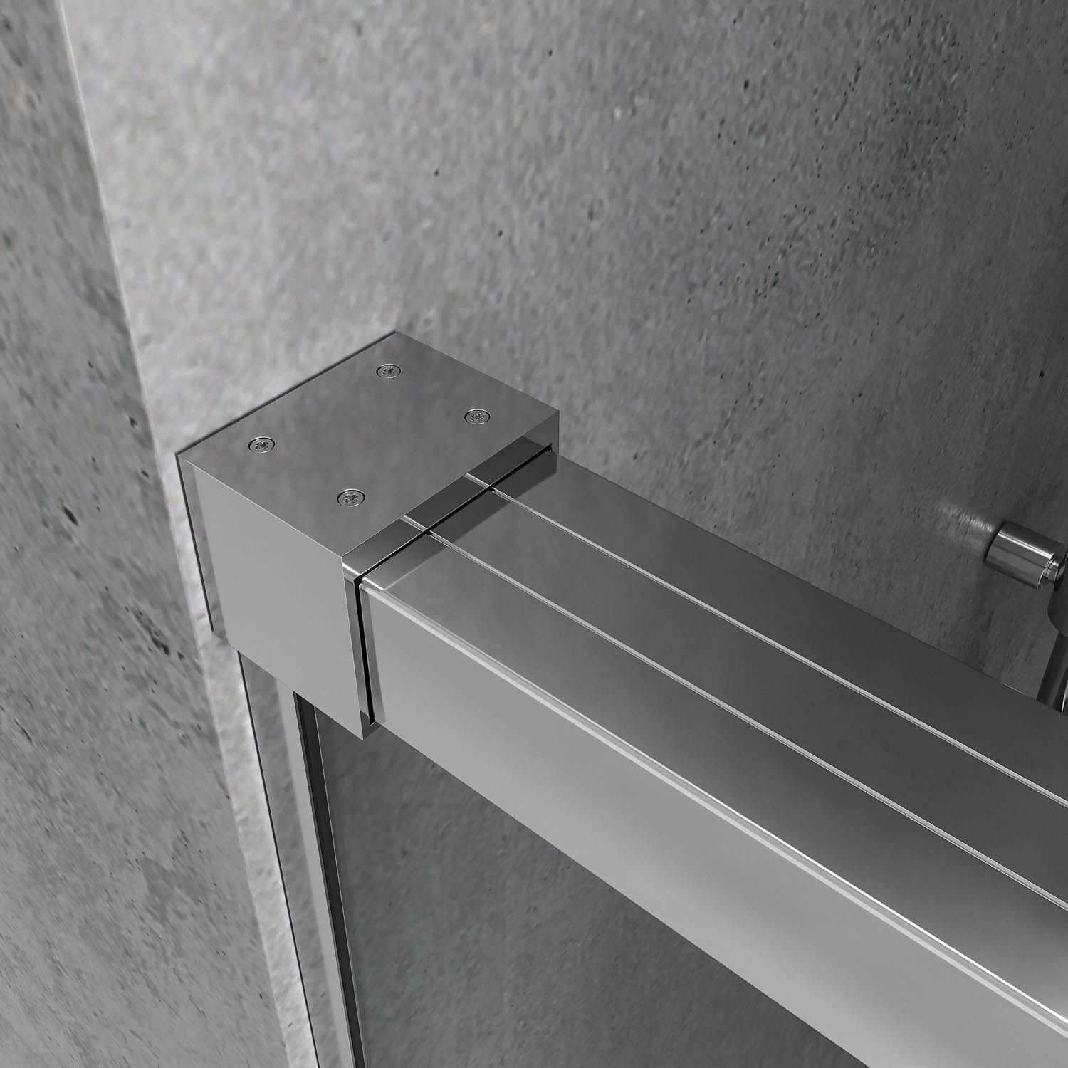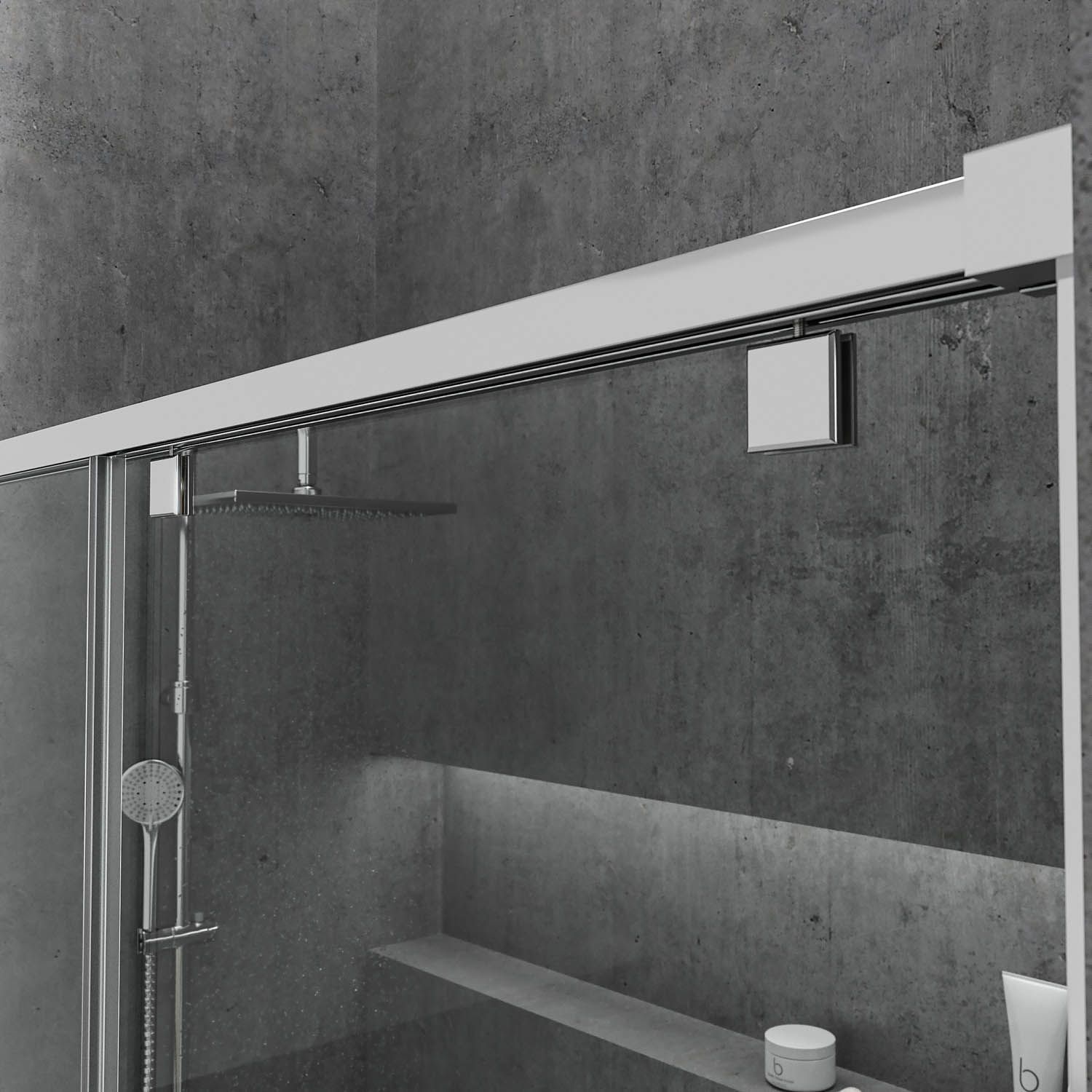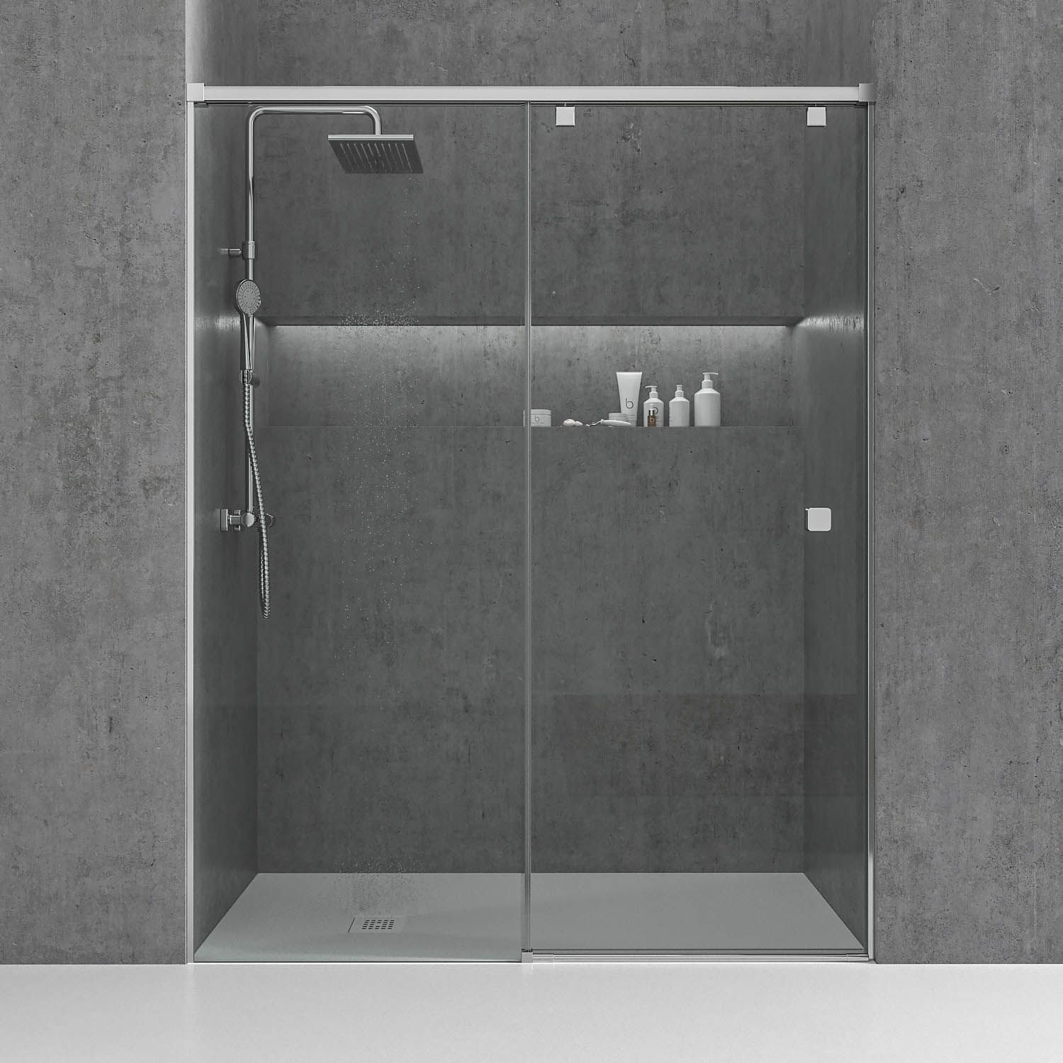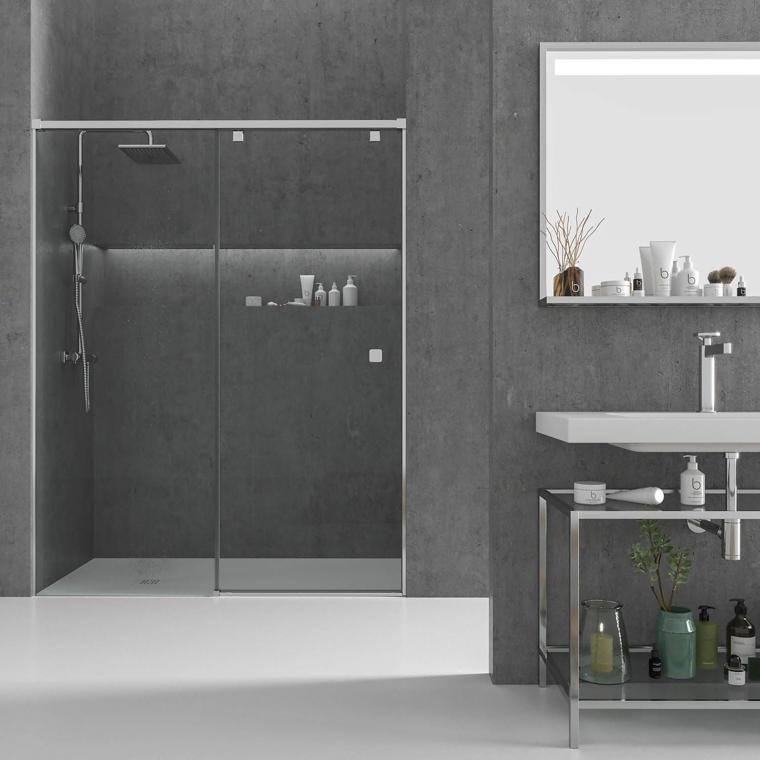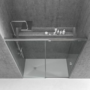 - Su composición de mampara de ducha de 1 fija y 1 corredera, con ruedas dobles ocultas y sistema de freno automático consigue en cada apertura y cierre un verdadero placer de tecnología.