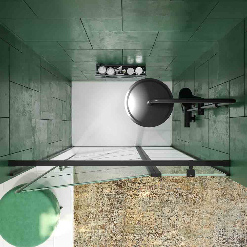 La mampara frontal de ducha OPEN solo lleva perfiles de aluminio en los lados, nada por arriba ni por abajo. Es un conjunto sencillo y discreto, que hará crecer la estancia con sus cristales templados de 6 mm.
