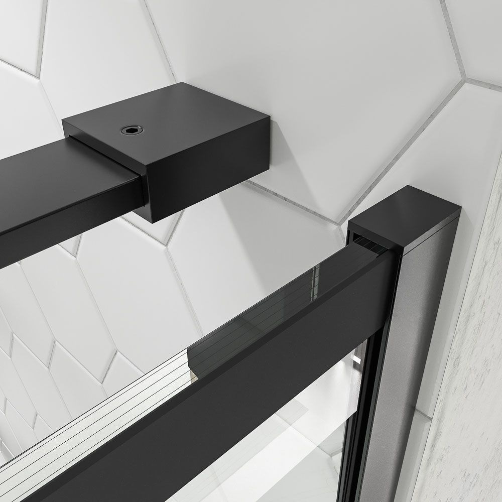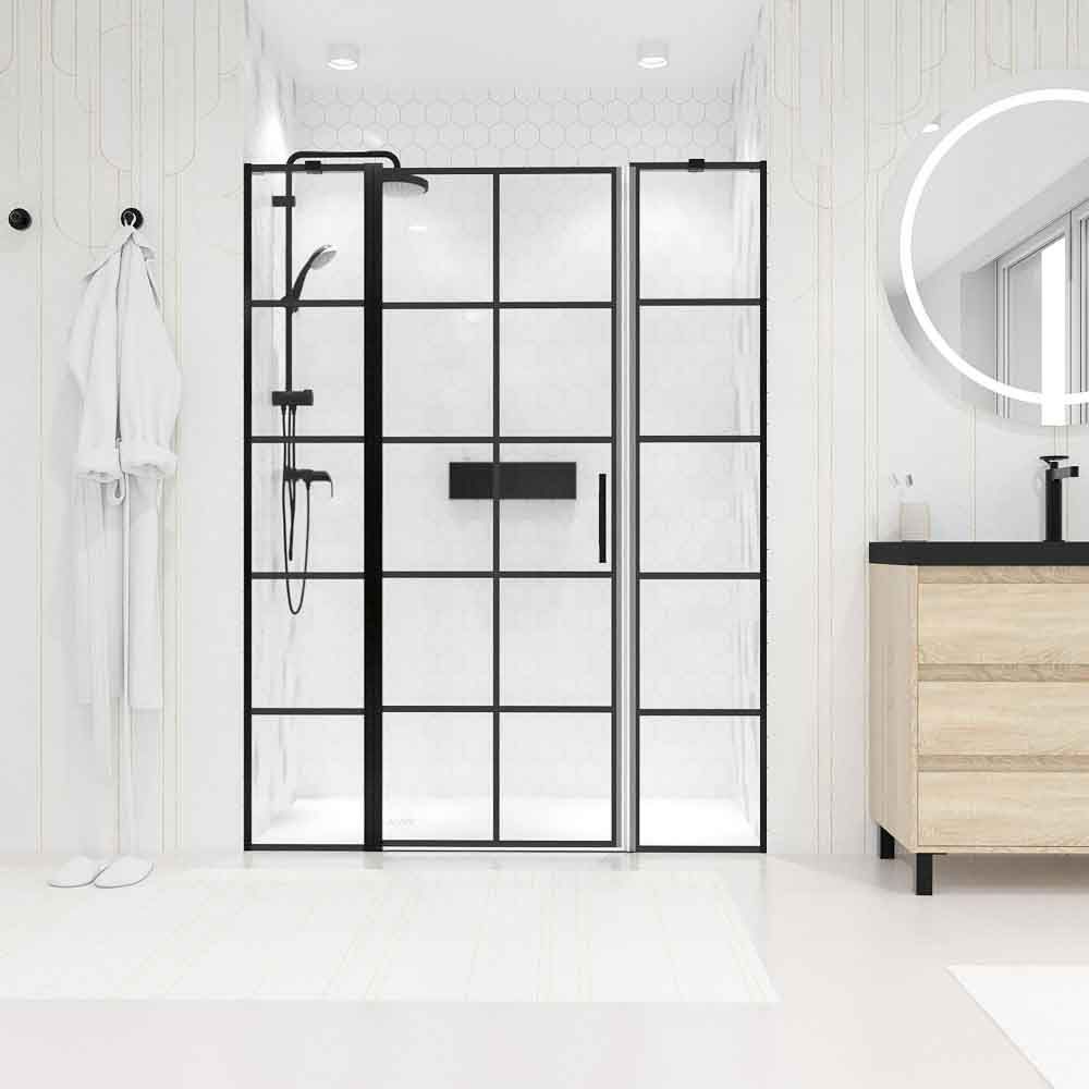 Mampara de ducha fija + abatible ZEN – Vidrio 8 mm + 6 mm – NEGRO MATE