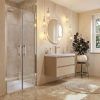 Ofrece la elección de crear las composiciones de fijo + 2 hojas abatibles + fijo que mejor se adapten a la distribución de su baño y dimensiones