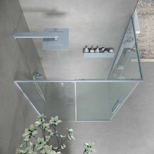 Su doble puerta corredera y sus partes fijas son idóneas para instalar cerca de obstáculos como el wc o el lavabo, puesto que no se precisa de centímetros extra para abrir la mampara de ducha.