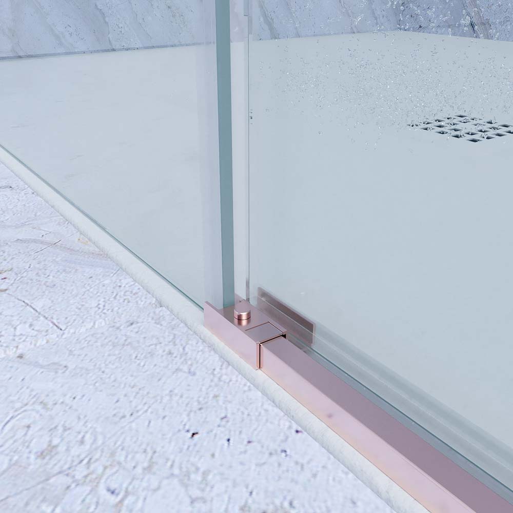 - Carece de perfil inferior, lo que aporta comodidad y seguridad en el acceso, además de resultar más higiénica, puesto que no se acumularán restos de cal en el raíl.