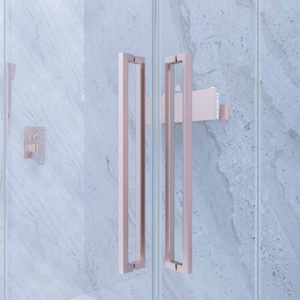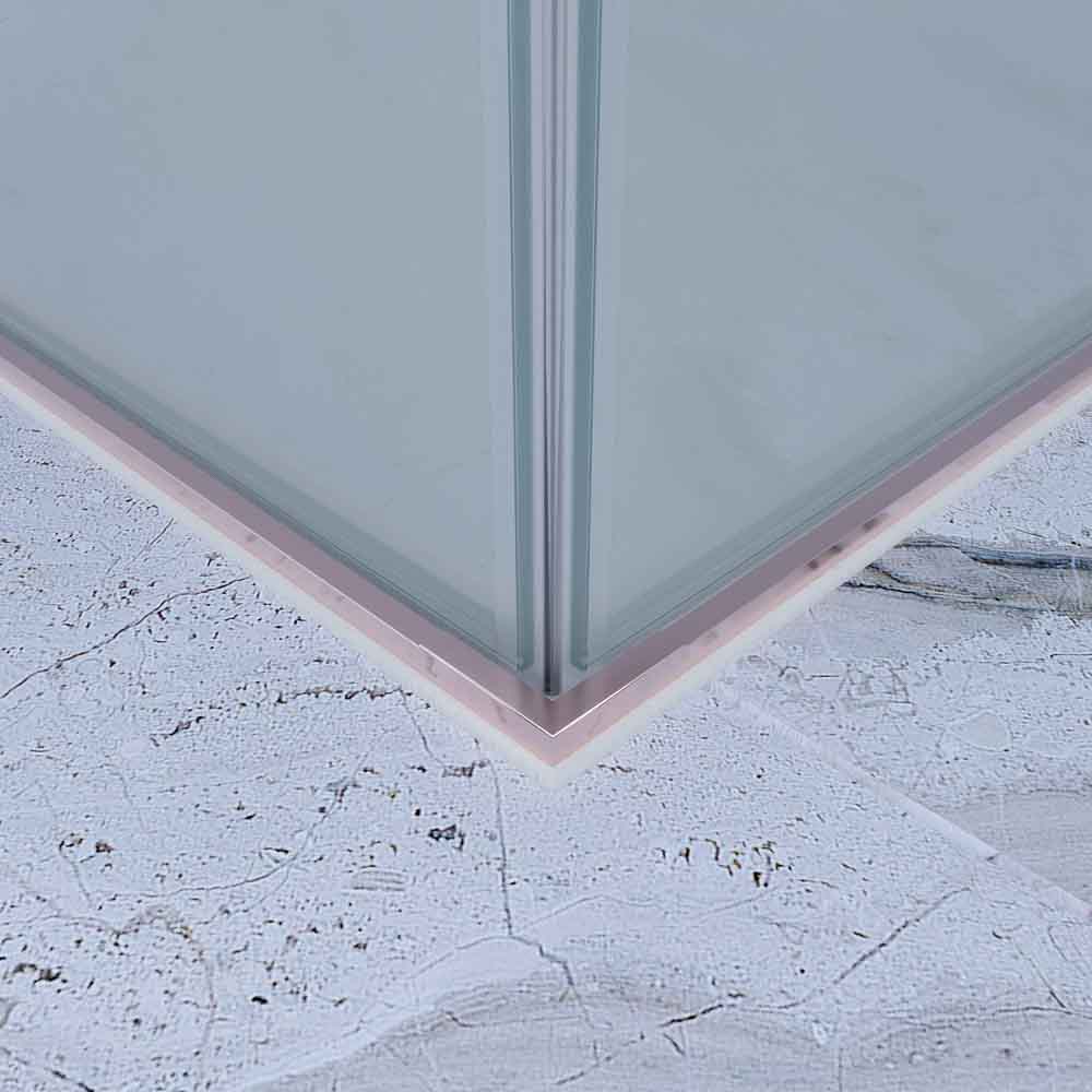 - La perfilería de la mampara de ducha angular PETRA es de acero inoxidable acabados mates . Un material de alta resistencia al desgaste y la humedad.