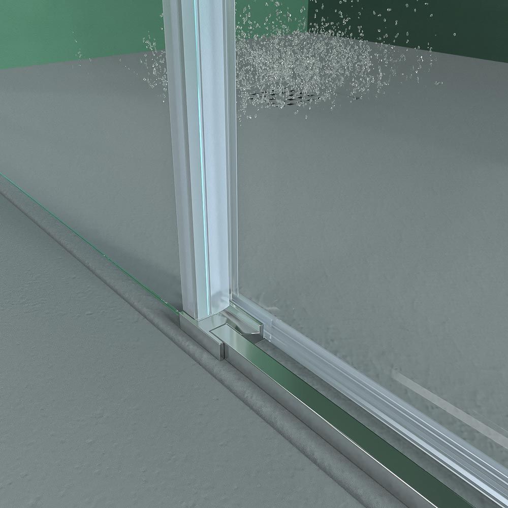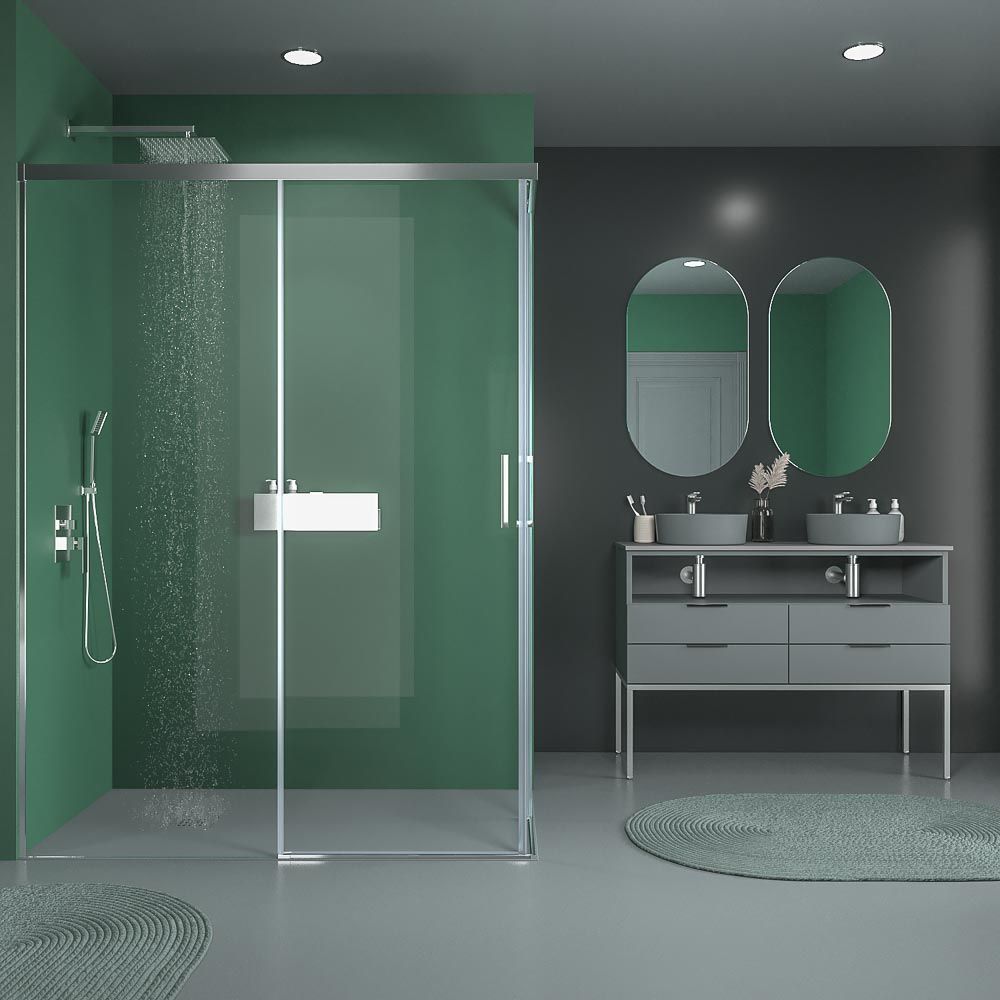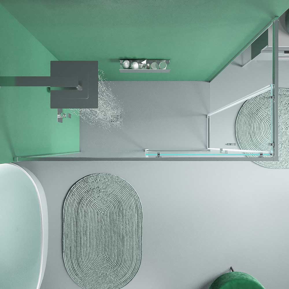 Mampara de ducha rectangular BASIC apertura angular 2 fijos-2 puertas correderas. Sin perfil inferior. Con tratamiento anti-cal.Acabado CROMO BRILLO