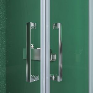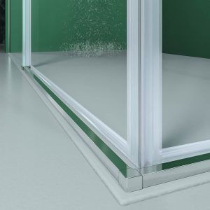 La mampara de ducha angular BASIC se compone de dos hojas fijas y dos correderas, con un acceso por el vértice y posibilidad de instalarla con apertura a izquierdas o derechas. Esta mampara de ducha estándar  se entrega en 2-3 días y está disponible en un amplio rango de medidas: de 68-100 a 68-100 cm por lado.