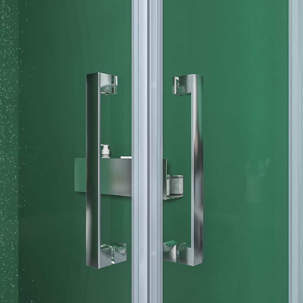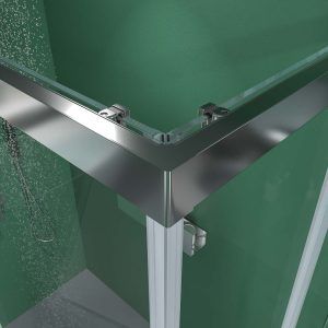 Sé el primero en valorar “Mampara de ducha rectangular BASIC apertura angular 2 fijos-2 puertas correderas. Sin perfil inferior. Con tratamiento anti-cal.Acabado CROMO BRILLO”