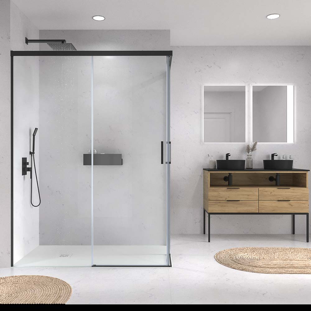La preciosa y moderna serie BASIC es una novedosa mampara de ducha que te encantará. Una mampara de ducha más robusta, fácil de montar y con perfilería disponible en varios colores, entre ellos el negro mate, tan de moda hoy en día.