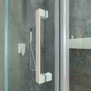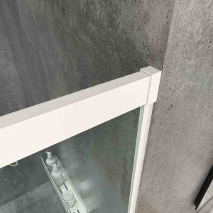 ¿Quieres saber otra característica que nos encanta de este nuevo modelo? Sus variadas opciones de perfilería de aluminio lacada blanca (a juego siempre con accesorios). Como puedes ver, esta mampara de ducha es realmente ligera visualmente y de diseño minimalista, con perfiles de aluminio laterales mucho más estrechos. Esto hará que el baño parezca más espacioso y lleno de luz.