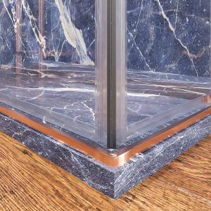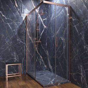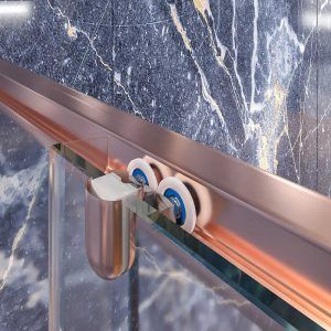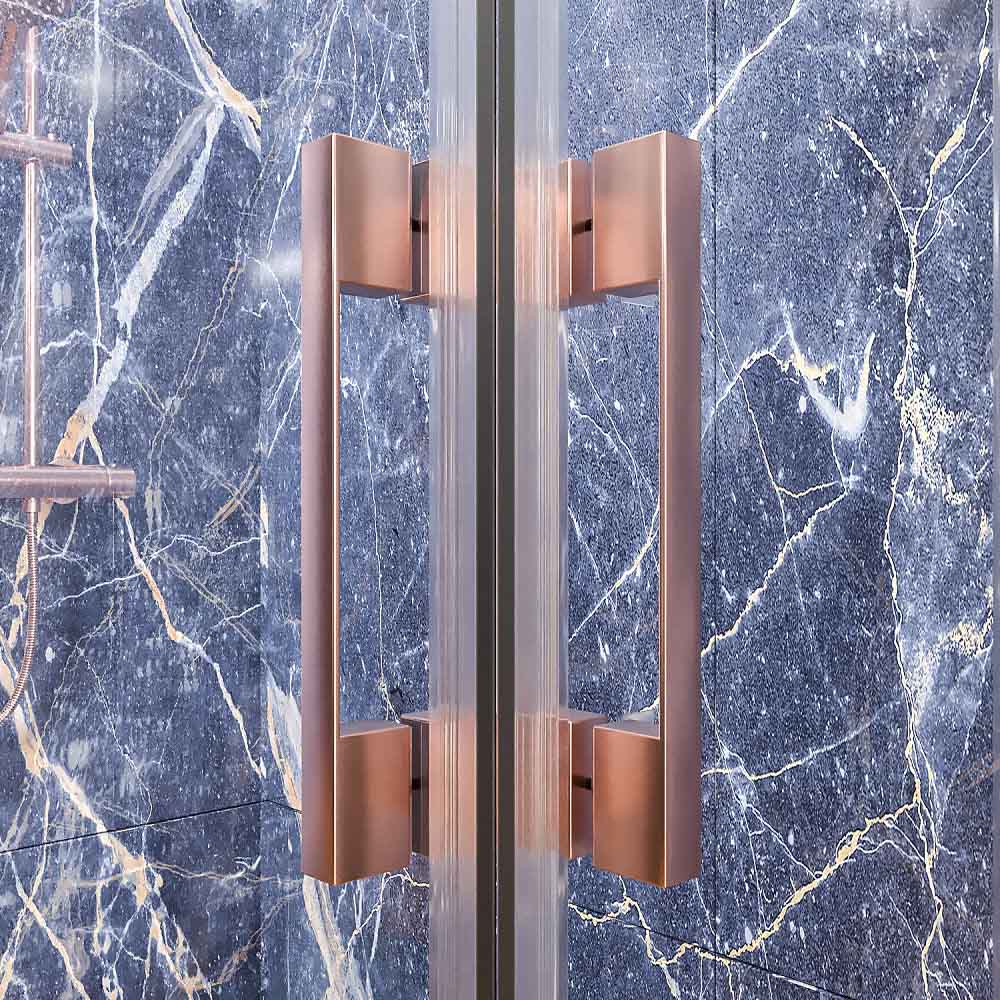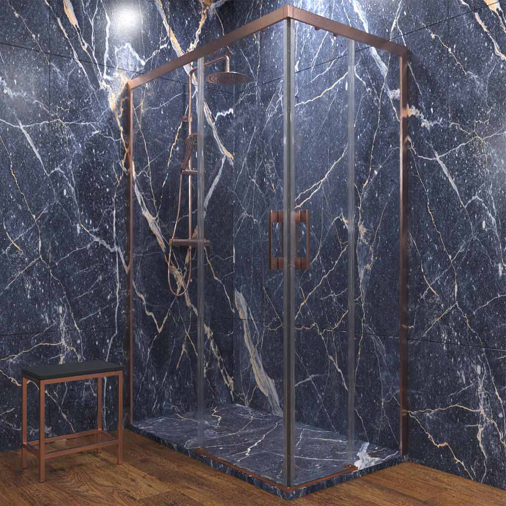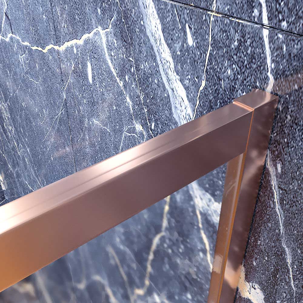 La perfilería de esta mampara de baño es de aluminio acabado Cobre mate , lo que, junto a las líneas depuradas y a su tirador a juego, confiere una sensación de amplitud y luz ante la que es imposible resistirse.