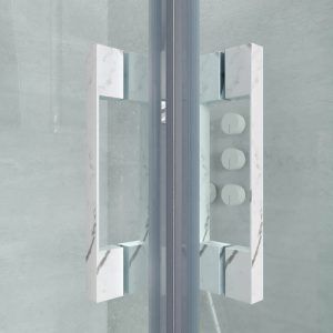 Sé el primero en valorar “Mampara de ducha rectangular FLARE apertura angular 2 fijos-2 puertas correderas. Sin perfil inferior. Acabado efecto mármol. CALACATTA”