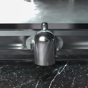 Aparte de la comodidad que supone tener una mampara con antical (no tendrás que limpiarla tanto ni tan a menudo para que esté perfecta), el perfil inferior de este modelo lleva un pulsador que libera la hoja corredera de su guía para poder limpiar la mampara de forma más rigurosa cada vez que lo desees.