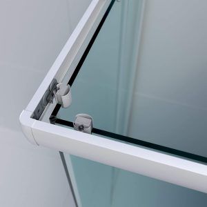 Su vidrio templado tiene 6 mm de grosor y acabado transparente y la perfilería es de aluminio blanco mate, así como los accesorios. Al componerse de dos fijos, y dos puertas correderas, los rodamientos dobles de la mampara Tempo se desgastarán menos y el conjunto durará más como nuevo.