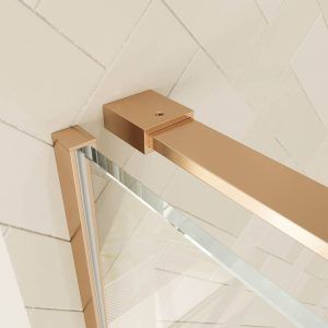 Mampara de ducha rectangular VERONA apertura frontal 1 fijo-1 puerta corredera con ruedas inferiores + 1 fijo acabado COBRE
