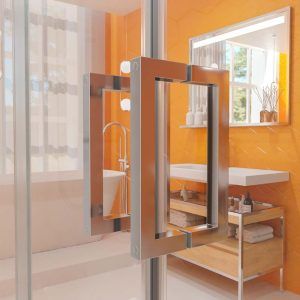 La mampara de ducha TECH HIGH  es un modelo único con la estructura en acero inoxidable fabricada a medida a techo , ya que la mayoría de las mamparas son de aluminio anodizado y ninguna consigue la altura necesaria. La anticorrosión y la fácil higiene son las principales características que ofrecen las mamparas de acero. Una mampara de calidad máxima.