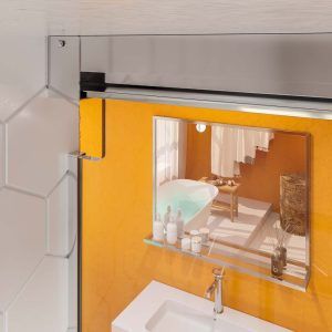 Además es una mampara  sin perfil inferior. Esto significa que no necesita estructura o marco en la parte inferior, permitiendo una entrada a la ducha, cómoda y sin escalones. También da un aspecto mas moderno y minimalista.
