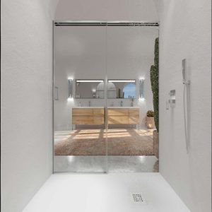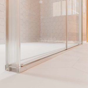 Además es una mampara sin perfil inferior. Esto significa que no necesita estructura o marco en la parte inferior, permitiendo una entrada a la ducha, cómoda y sin escalones. También da un aspecto mas moderno y minimalista.