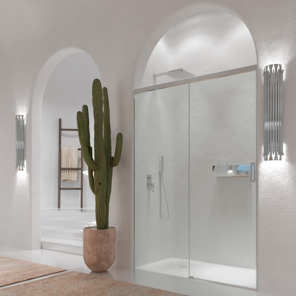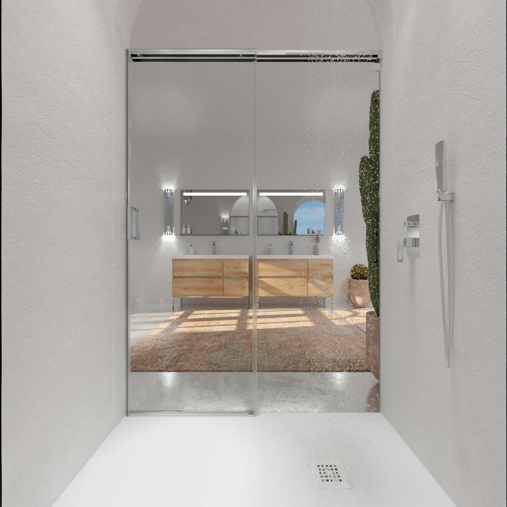 - Recomendable especialmente para platos de ducha cuyo frontal sea mayor de 120cms, para que deje un espacio de entrada mínimo de 50cms.